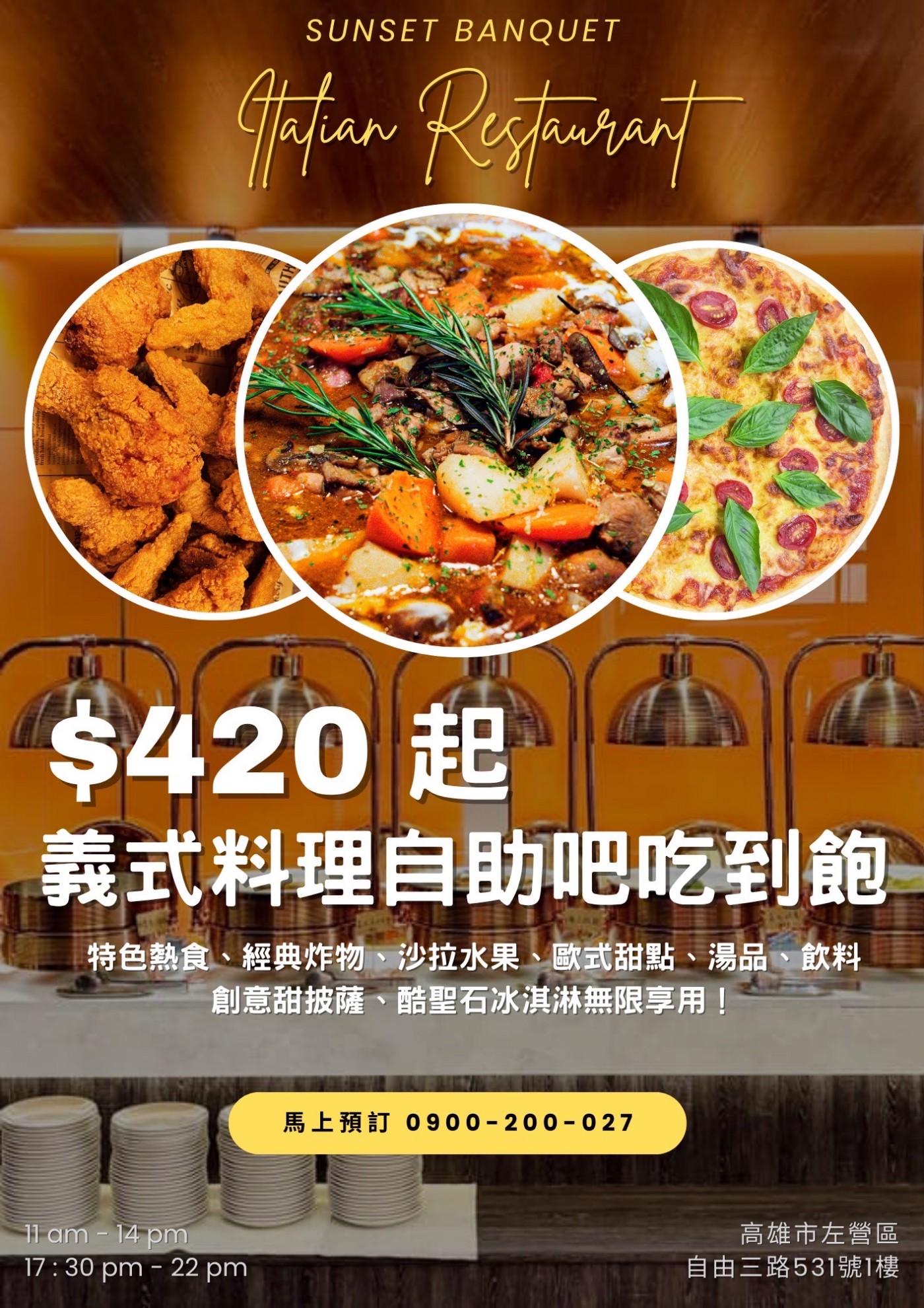 日落饗宴正是為了重現這份期待而誕生的——一間結合義式經典主菜與副餐吃到飽自由靈魂的義式料理餐廳。